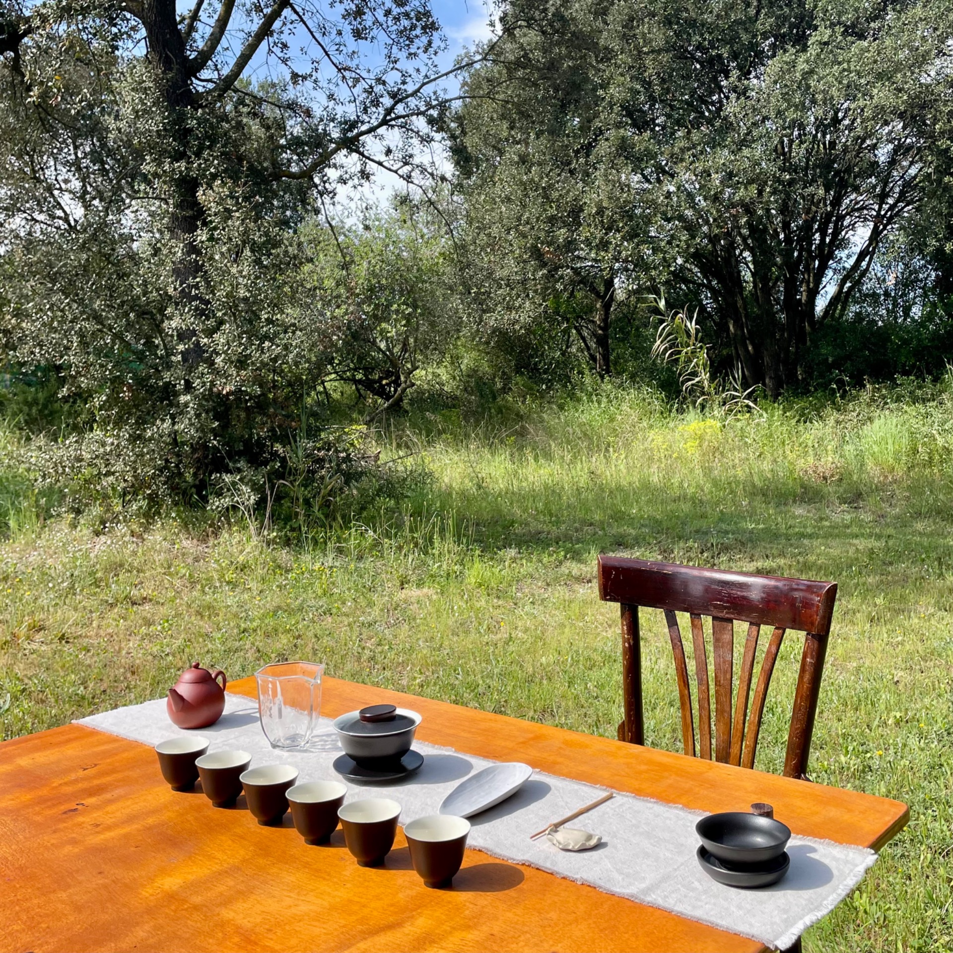 A la cerimònia elevem l'experiència de prendre el te. Aturem el temps i ens endinsem en els aromes, sabors i sensacions que ens desperten uns tes excepcionals preparats meticulosament seguint l'estil oriental del gongfu cha. Un moment de calma on el te ens connecta amb la naturalesa i amb el nostre interior.